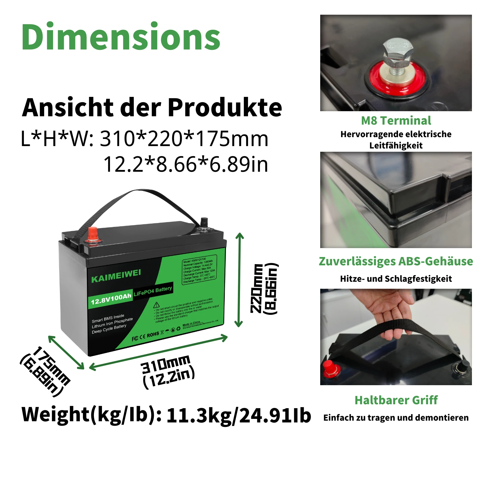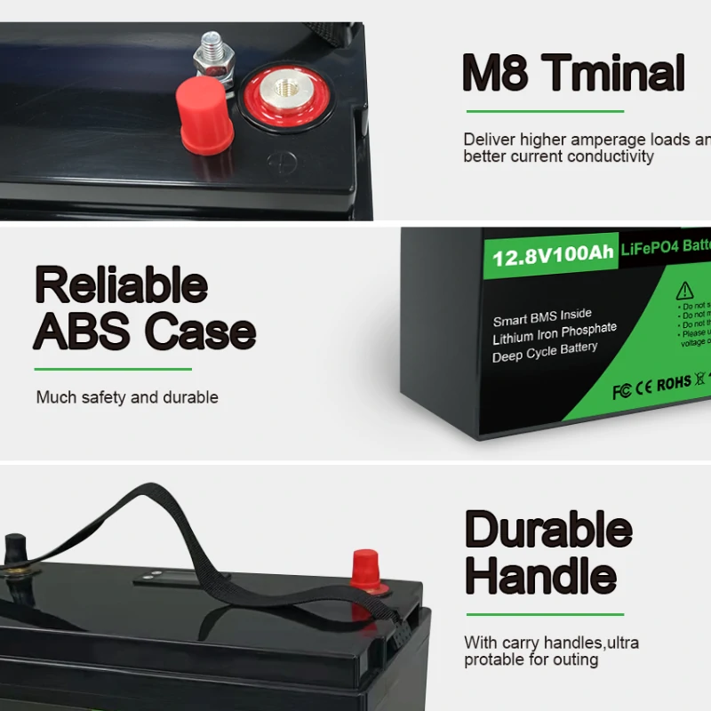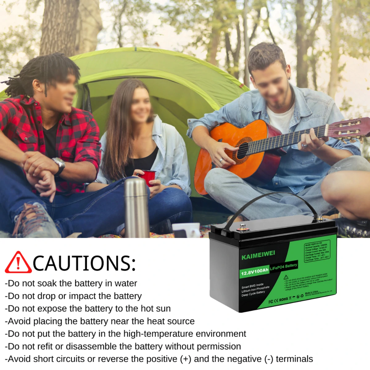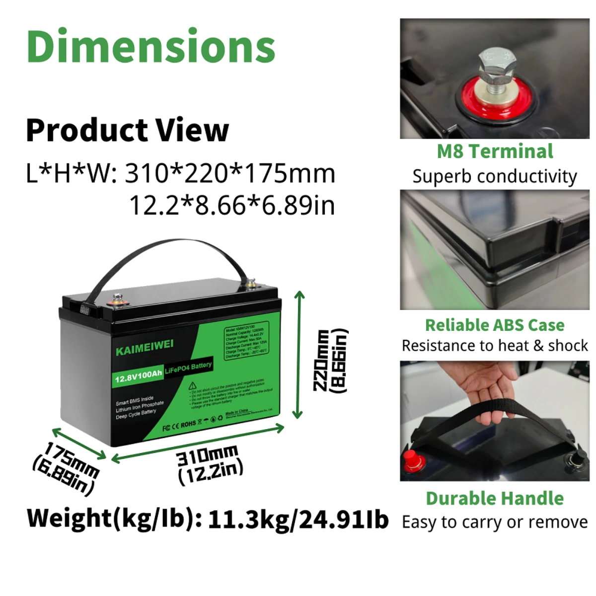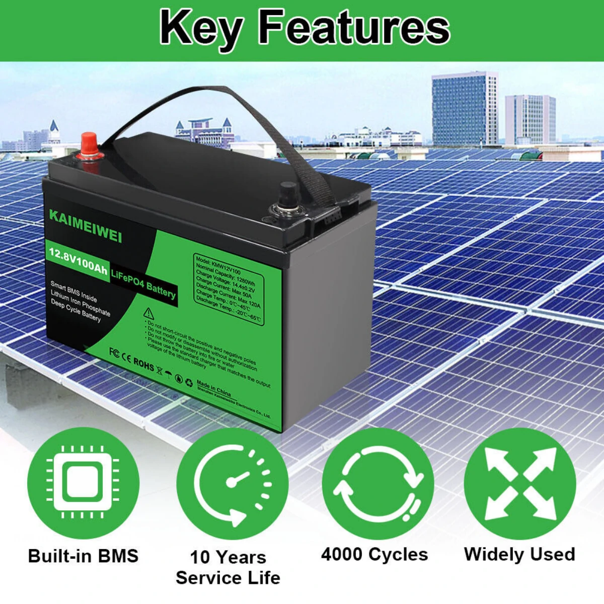 12.8V 100AH 1280 Wh LiFePO4 4500+ Deep Cycle Rechargeable Lithium Battery 1280 Wh – Built With Smart BMS