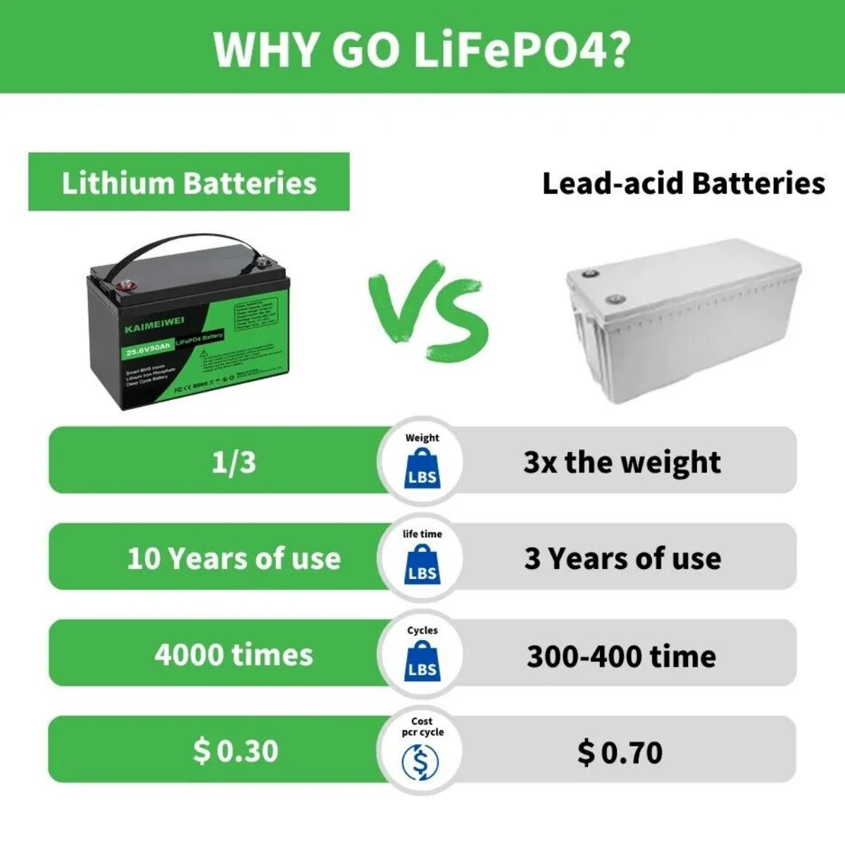 Long lifespan (4500-10000 cycles, lead-acid is ~400).