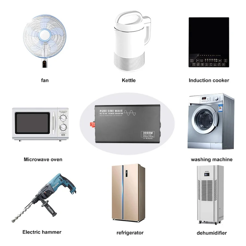 100% pure sine wave output, low distortion, waveform and main power line AC waveform are basically the same, equipment accuracy is small, low interference, low noise, strong load capacity, can meet any type of AC load, without damaging the load.