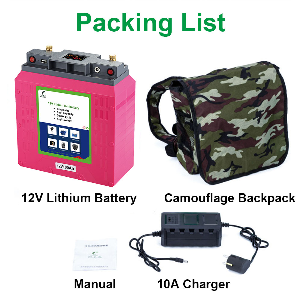 Packing list: 12.6v lithium battery*1, camouflage backpack*1